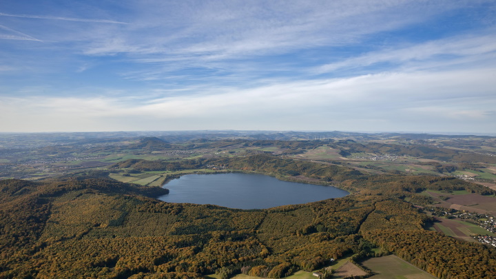 Нечто грандиозное происходило, когда вулкан просыпался в последний раз тысячи лет назад. Собственно, и озеро Лаахер-Зе образовалось во время извержения: магматическая камера под поверхностью резко опустела и верхние слои земли обрушились внутрь. Так сформировалась объёмная чаша и со временем заполнилась водой.