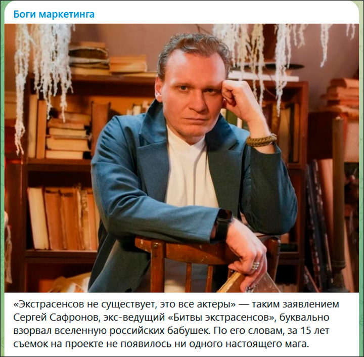 Никто из экстрасенсов не прошёл тест от Сафронова. Скриншот: ТГ-канал "Боги маркетинга"