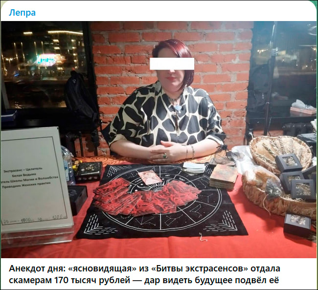 "Ясновидящая" уверяла, что с детства предсказывает будущее, но в этот раз суперсила дала сбой. Скриншот: ТГ-канал "Лепра"