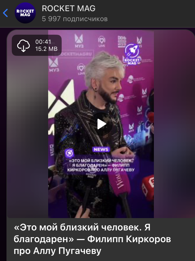 19 октября в Государственном Кремлёвском Дворце состоялось масштабное празднование дня рождения телеканала МУЗ-ТВ, на котором Филипп Киркоров сделал неожиданное признание в адрес Аллы Пугачёвой. Певец подчеркнул, что не имеет никаких претензий к "примадонне" и с благодарностью отозвался о ней как о близком человеке, сыгравшем важную роль в его жизни. Киркоров отметил, что за десять лет совместной истории невозможно забыть такой вклад в его личность: