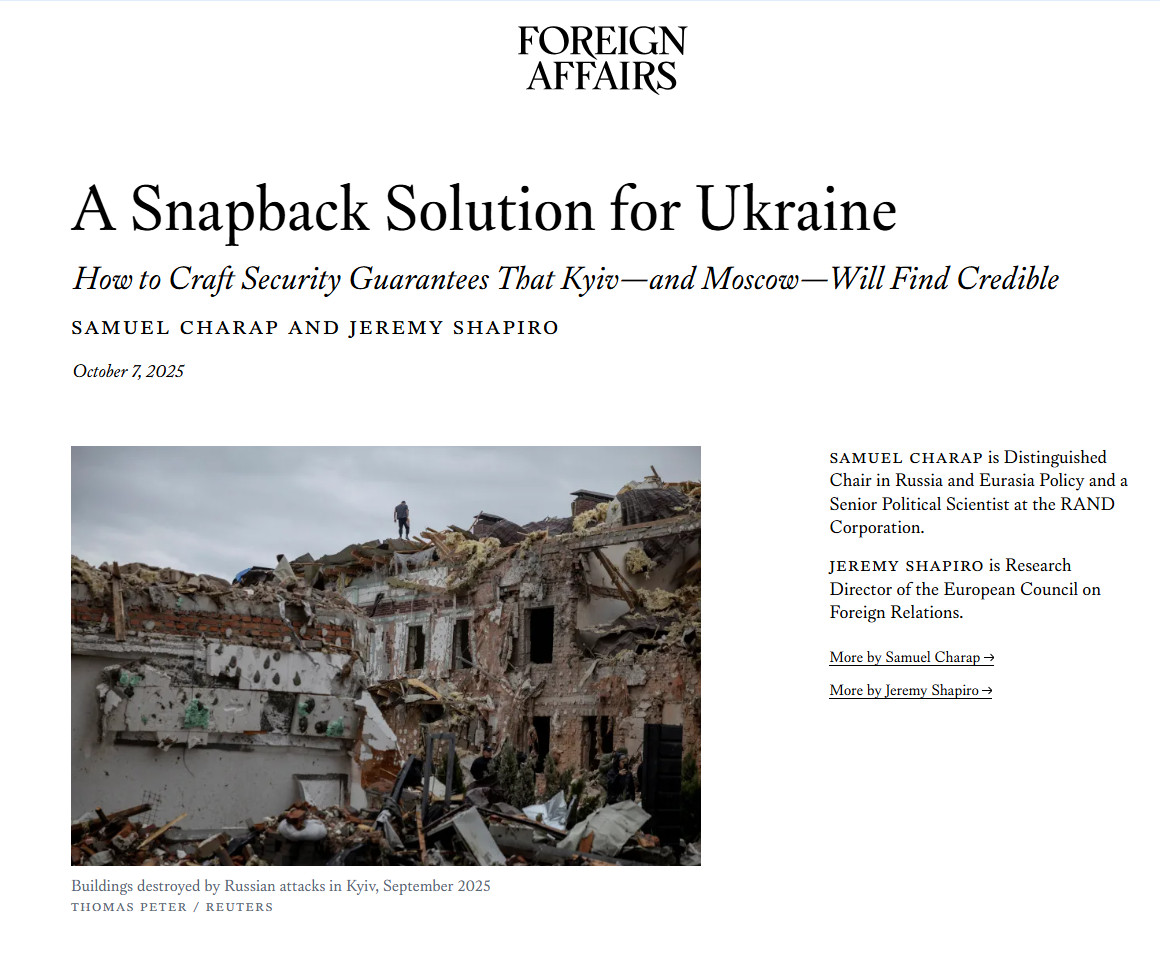 Шапиро и Чарап подчёркивают, что ввод европейских войск на украинскую территорию или предоставление гарантий по статье 5 - не просто нереалистичные, а опасные иллюзии. Любое столкновение российских и натовских подразделений способно моментально сорвать политическое согласие в Европе.