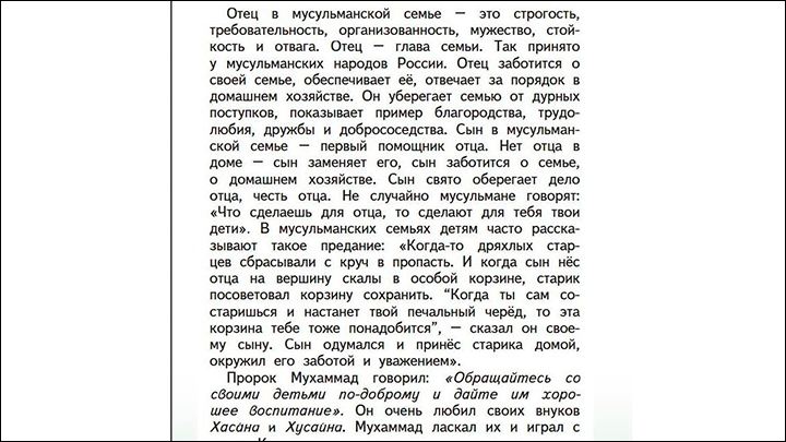 Удивительно подробное для пятиклассников изложение исламского понимания роли и значения отца. Скриншот: Царьград