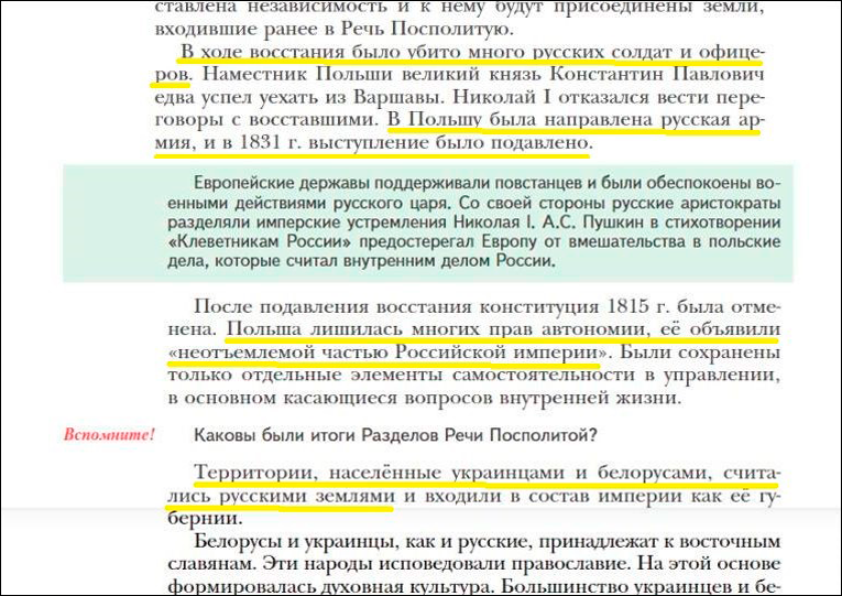 Оказывается, Российская Империя "несчастных" поляков угнетала (после кровавого антирусского мятежа отменила для Польши Конституцию, которую сама и даровала), активно притесняла белорусскую и особенно украинскую культуру, интеллигенцию и самосознание. "Тюрьма народов", ни дать ни взять…