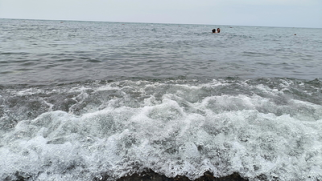 Женщина решила поплавать с маской в море несмотря на сильные волны.