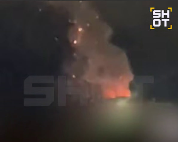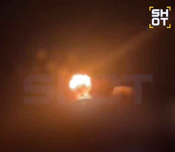 На кадрах, оказавшихся в распоряжении телеграм-канала SHOT, видно, как происходит мощный взрыв. Ночное небо озаряет "ядерное свечение", после чего поднимается столб дыма.