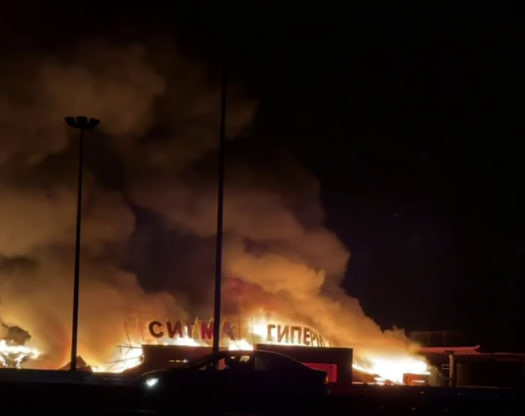 Сколько человек от этого пострадало, пока неизвестно. Ясно одно: "Сигмы" уже нет. Вражеская сторона уничтожила огромный супермаркет на трассе "Славянск - Донецк - Мариуполь". Перекрытия обрушились, здание почти полностью выгорело.